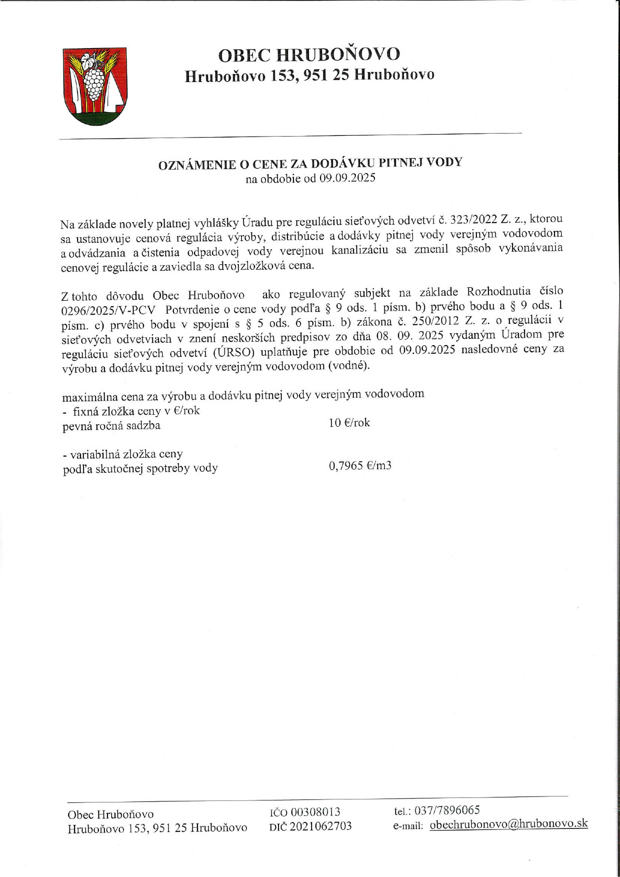 Oznamujeme občanom, že v pondelok 29.09.2025 sa v obci Hruboňovo vykonáva mimoriadny odpis spotreby vody vo Vašich domácnostiach z verejného vodovodu.