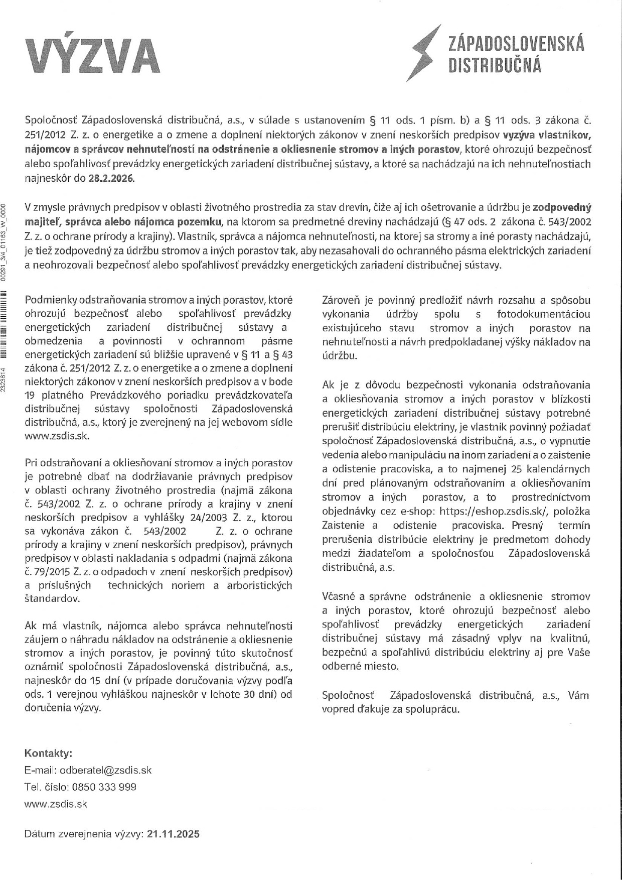 Výzva na odstránenie a okliesnenie stromov a porastov